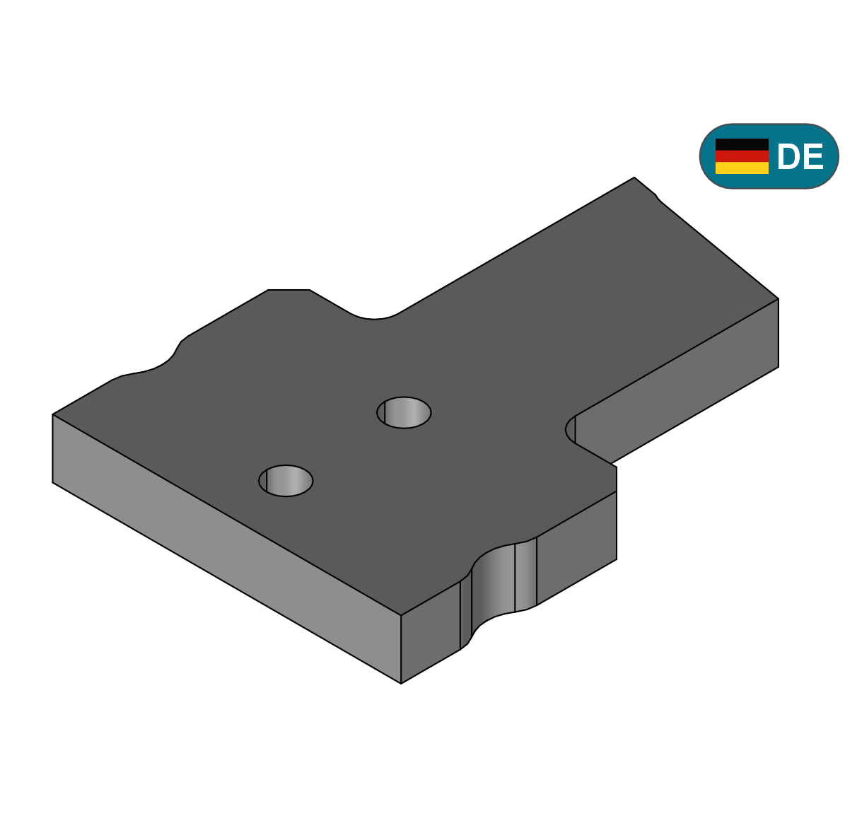 In diesem ISO GPS Anwendungsbeispiel wird eine Schneidplatte spezifiziert, welche in einen Halteeinsatz verbaut wird. Ein Führungsbereich (Fügen) muss beschrieben werden, so wie eine klassische Einbausituation (Anschlag/Verriegelung). Durchgangsbohrungen sollen das Fixieren der Schneidplatte ermöglichen. Die Ausrichtung und die Position der Schneidkante muss eindeutig definiert werden. Die für die Funktion weniger relevanten Bereiche werden vollständig und eindeutig unter Verwendung der aktuellen Allgemeintolerierung beschrieben.